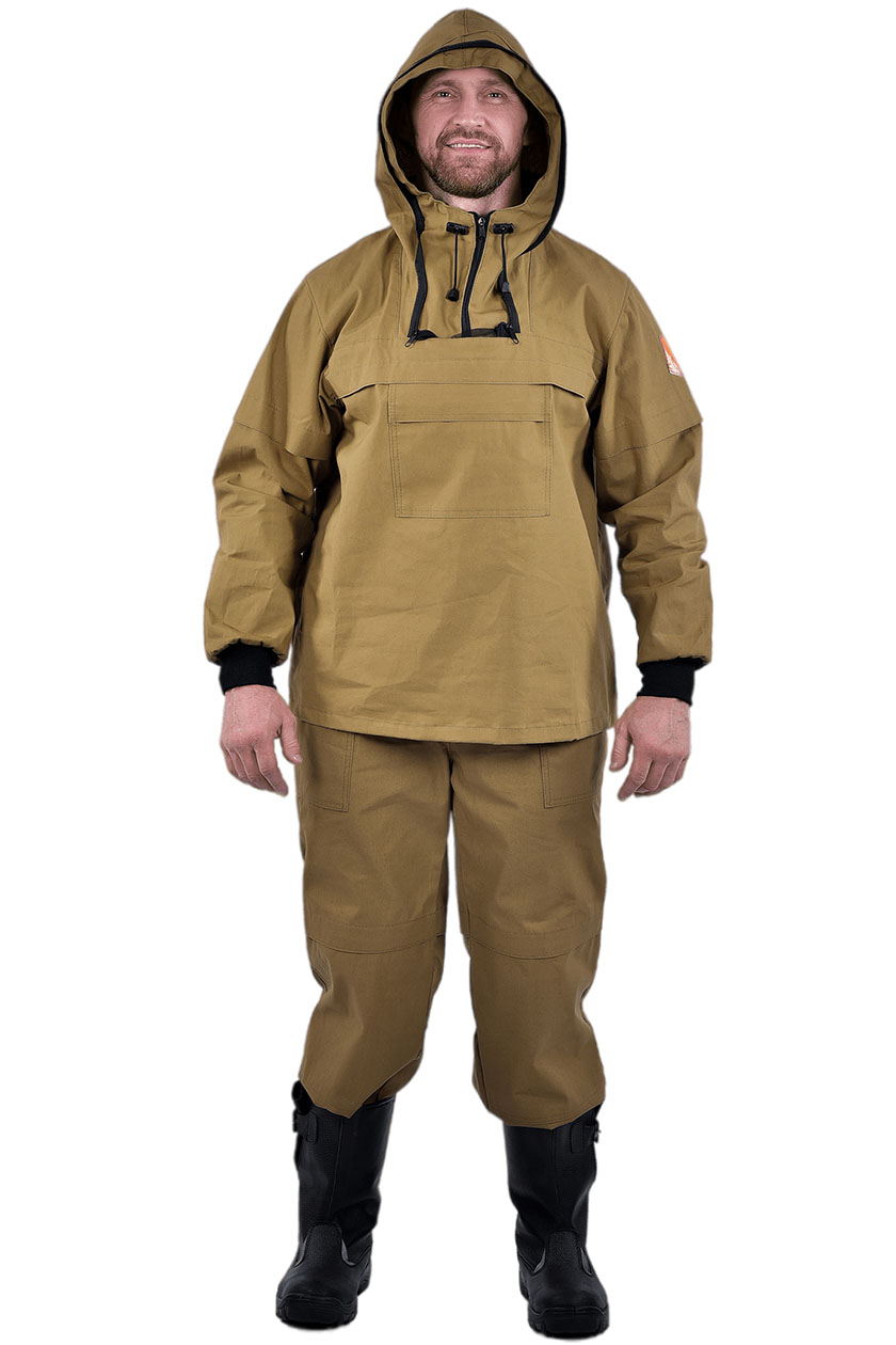 ➠ Куртка прямого силуэта с отрезными кокетками полочки, с капюшоном сложной конструкции, исключающей проникновение насекомых под одежду. Капюшон с противомоскитной сеткой. Низ куртки стягивается эластичным шнуром с фиксатором. Рукава втачные, с трикотажными манжетами-напульсниками.
