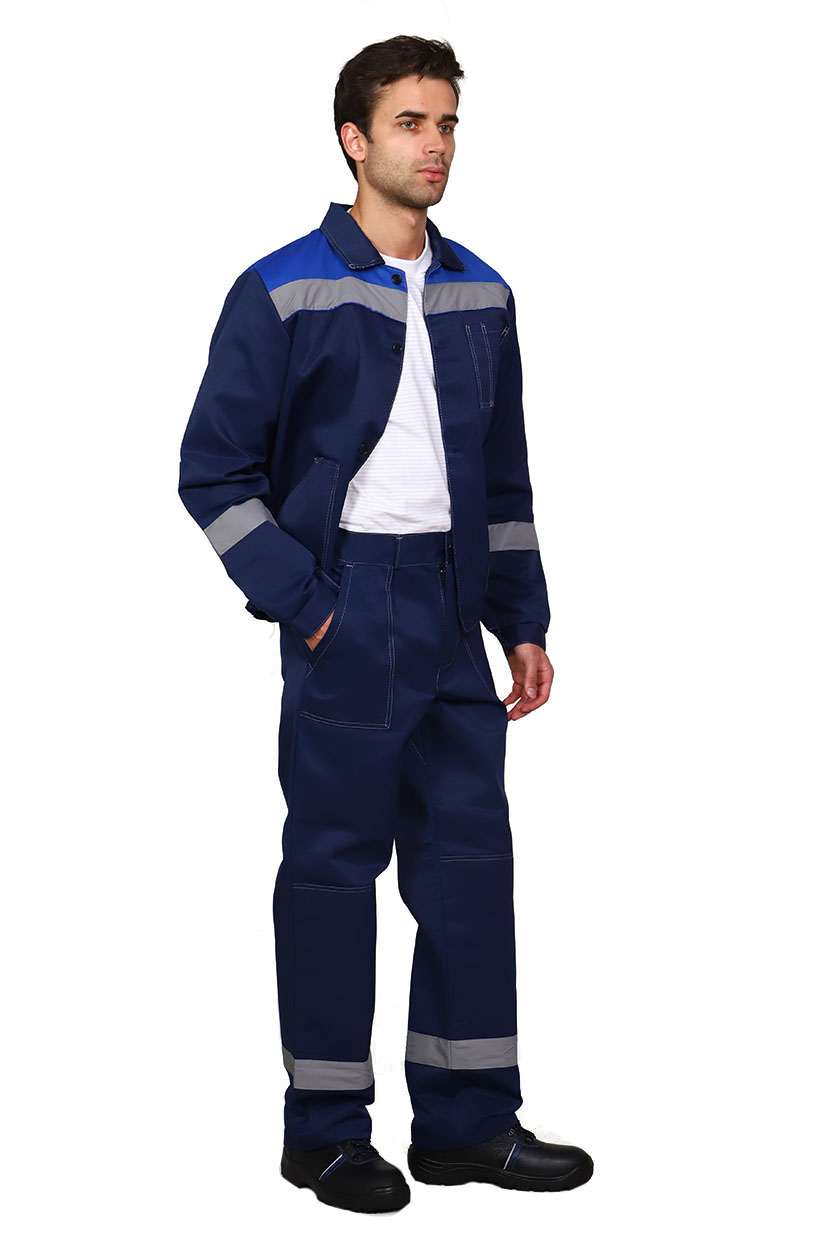 ➠ Брюки с притачным поясом, с застежкой гульфика на тесьму «молния» и одну пуговицу на поясе, пять шлевок. Два накладных кармана с наклонным входом. Наколенники, по низу брюк СОП 50 мм.