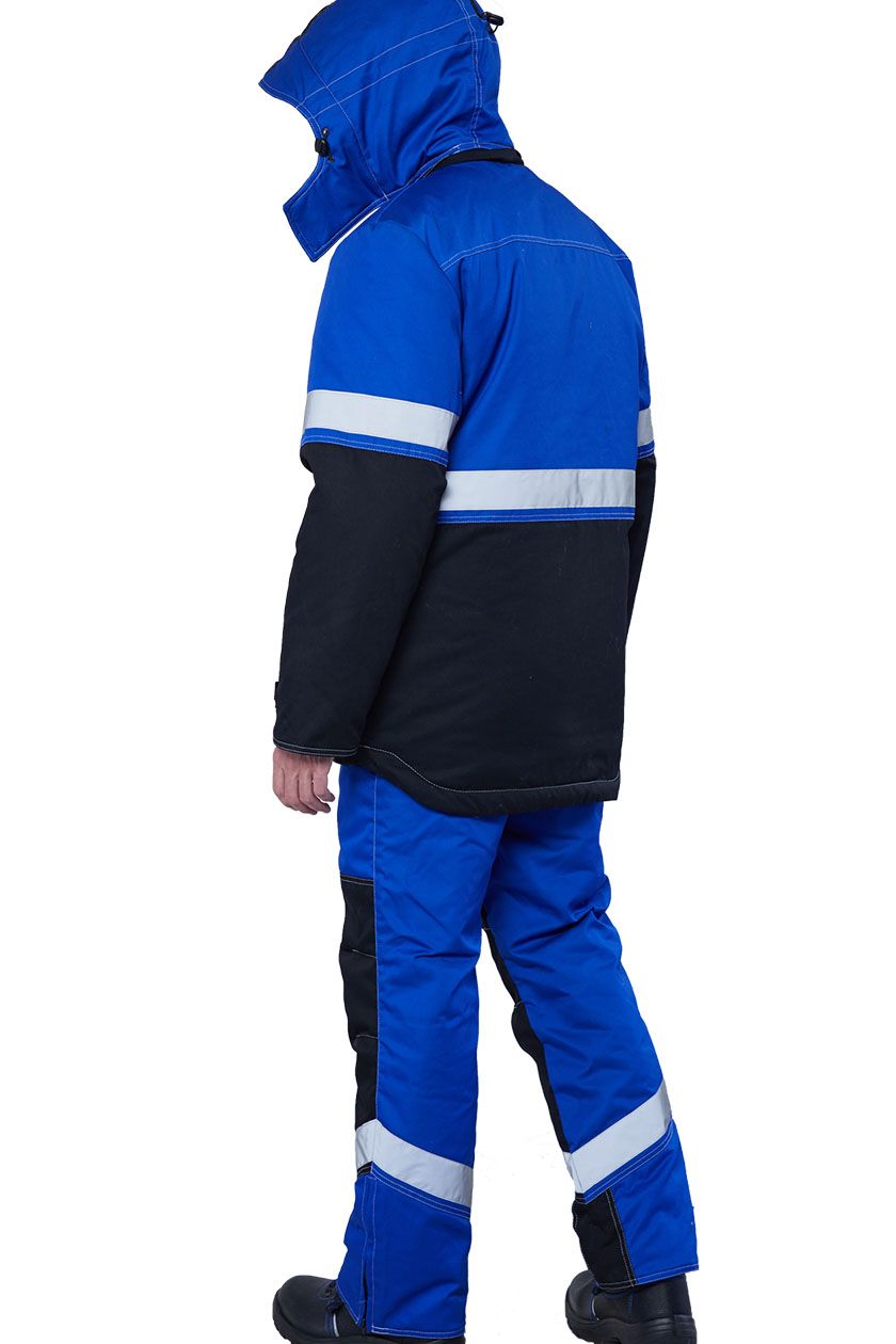 Капюшон съемный с тесьмой «молния», с козырьком, стянут шнуром по лицевому вырезу. По линии низа для регулировки объема предусмотрена кулиса. Спинка выгнутая и удлиненная. По низу рукава пата с липучкой. Внутри рукава трикотажная манжета. СОП 50 мм.