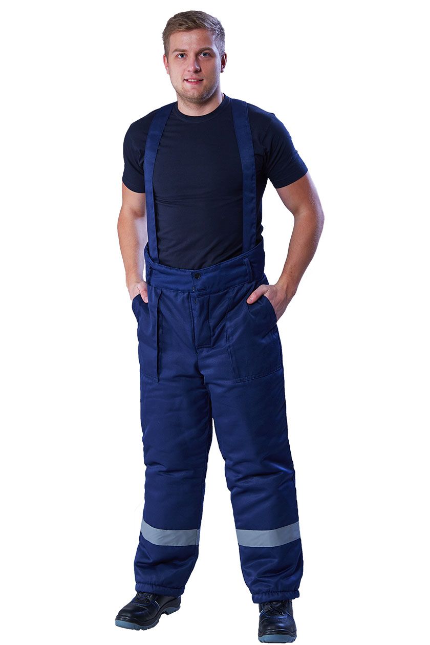➠ Брюки утеплённые с притачным широким простеганным поясом, с бретелями. Передние половинки с двумя накладными карманами с наклонным входом и объемом с одной стороны. СОП 50 мм проходит вкруговую по низу брюк.