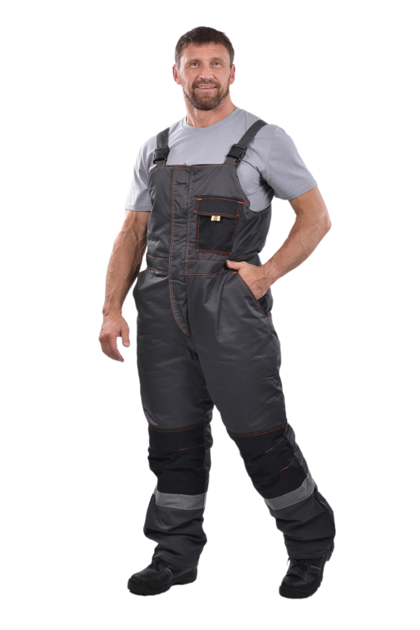 ➠ Полукомбинезон утеплённый с центральной застежкой на 2х замковую молнию, с внутренней ветрозащитной планкой, с регулировкой в области талии с помощью эластичной тесьмы и пат. На левой полочке накладной карман с клапаном. Передние половинки с карманами с отрезным бочком, усилением в области коленей. Внизу боковых швов разрезы, застегивающиеся на молнию. По низу полукомбинезона СОП шириной 50мм.